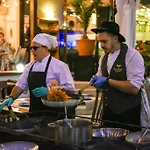 Misafirler, yemek için 400 metre uzaklıkta bulunan ve İngiliz mutfağından yemekleri sunan brew pub London Pub'ı seçebilirler.